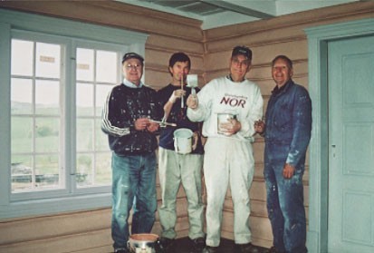 Etter at råbygget var reist sent i desember 2000, hadde klubbene ønske om å drive innvendig dugnadsarbeid i bygningen. Arbeidene kom i stand sommeren 2001 med skraping av flere lag gammel maling på tømmervegger og paneler. Arbeidet ble sluttført i september samme året. Dugnadene fortsatte sommeren 2002 med sparkling av store sprekker i tømmervegger og spikerhull i paneler.
