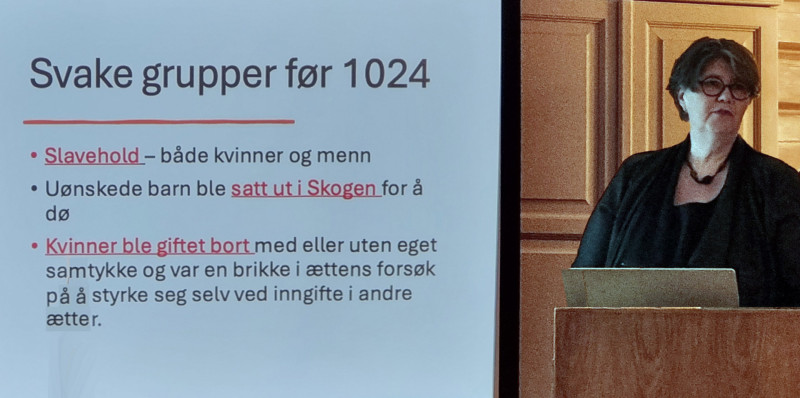 "Tusenårs markering av Kristenretten i Norge" ved politisk redaktør i Vårt Land Berit Strøyer Aalborg. Kristenrettens innføring i Norge i 1024 ble markert på Moster i Rogaland i 2024.
